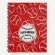 Personalize this red and white baseball patterned notebook with a name and school year for a student who lives for baseball. Choose a paper style and color of the spiral binding to customize it even further, See other coordinating items in this design collection at KidsUnique on Zazzle.