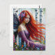 AI generated art of a fairy with beautiful red hair in a purple dress celebrating spring in a birch tree forest with blooming wildflowers
