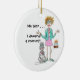 How can it be?! 50 already? Our red haired Lady is having trouble coming to terms with the reality of her years. Even her Poodle seems shocked by the news. Her green jacked and shoes, pink skirt and jewelry tell us she is on her way to a birthday party where a cake supporting a bonfire of candles awaits her. Perhaps you have a friend who will get a laugh when you hand her this ornament