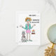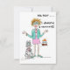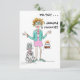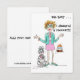 How can it be?! 50 already? Our red haired Lady is having trouble coming to terms with the reality of her years. Even her Poodle seems shocked by the news. Her green jacked and shoes, pink skirt and jewelry tell us she is on her way to a birthday party where a cake supporting a bonfire of candles awaits her. Perhaps you have a friend who will get a laugh when they open this card.