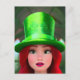 AI generated woman with red hair dressed for St. Patrick's Day in a cartoon style