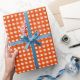 Bright and cheerful wrapping paper with hand-drawn (read: playful and quirky) plaid square checks in red and beige. Created by Annie Montgomery Design.