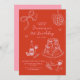 Red Hand Drawn Cute Pink Birthday Invitation
