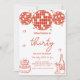 Red Hand Drawn Disco Ball Birthday Party Invitation