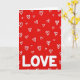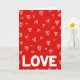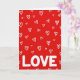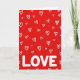 This greeting card features a bright red background filled with lots of small white hearts scattered all over. The hearts look hand-drawn, with uneven lines that make them feel sweet and casual. Some hearts are simple single outlines, while others have thicker, scribbly double lines, so the pattern feels lively. Near the bottom, the word “LOVE” appears in large white capital letters that stand out clearly against the red. The letters are smooth and easy to read, giving the design a strong, clear message. The high contrast of red and white keeps the focus on romance and affection, perfect for a Valentine’s Day note 💘❤️. It feels cheerful and full of caring, like a big reminder that love is worth saying out loud. Hope it helps you share a little extra love on Valentine’s Day 😘.