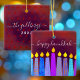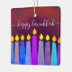 “Happy Hanukkah.” A playful, modern, artsy illustration of boho pattern candles helps you usher in the holiday of Hanukkah in style. Assorted blue candles with colorful faux foil patterns overlay a rich, deep burnt red orange textured background. On the back, personalize with your family name and year, over a tiny dark red Star of David pattern and background. Feel the warmth and joy of the holiday season whenever you hang up this stunning, colorful Hanukkah custom keepsake ornament. Matching cards, envelopes, wrapping paper, mugs, blankets, serving trays, home décor, and more are also available. A great gift for someone special, even yourself!