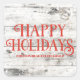 Red Happy Holidays on Wood | Holiday Greetings Square Sticker