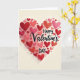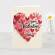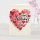 This Valentine's Day card features a large heart shape made from lots of smaller hearts scattered and layered together. The little hearts range from deep red to bright pink and soft rose, giving the big heart a gentle color shift. Many of the hearts look like they’re floating slightly, with a bit of texture that makes the design feel warm and hands-on. In the center of the heart, the message reads “HAPPY Valentine’s DAY.” “HAPPY” and “DAY” are in simple block letters, while “Valentine’s” is written in a flowing script that stands out across the middle. The background is an off-white tone, which helps the reds and pinks pop without feeling too busy. It’s a sweet, romantic design that fits love, friendship, or a thoughtful note for someone special ❤️💌🍫.