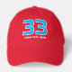 Red hat with custom race number and text template. Make your own cap for Birthday, racing event, rally, game etc.