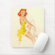 Vintage sketch and watercolor of a red haired girl in skimpy yellow outfir