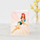 A cute red-headed pin-up greeting card featuring "Pelirroja Peligrosa 2015" by pinup artist Sean Earley
