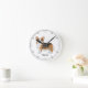Destei's original cartoon illustration of a red headed tricolor Pembroke Welsh Corgi breed dog. The clock face is made of simple modern lines. There is also a personalizable text area for a name or other custom text.
