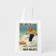 Red-headed Woman Smiling and Skiing Poster Reusable Grocery Bag