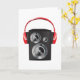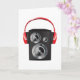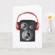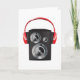 This design is red headphones. The headphones are placed on top of a speaker. This red headphones design looks great on this Greeting Cards