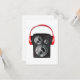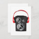 This design is red headphones. The headphones are placed on top of a speaker. This red headphones design looks great on this Invitations