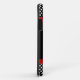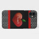 Stylish teacher's iPhone 5 case, done in black, with white polka dots, on the top and the bottom and edged with a red line. Colorful graphics of a big red heart shaped apple, in the middle, has custom white text reading iTEACH. Personalize to change the text to anything you want.