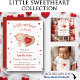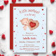Little Sweetheart Red Valentine's gender neutral Baby Shower How Big Is Mommy's Belly game poster featuring a cute baby teddy bear holding a heart cookie, all in red and beige shades, with little hearts - Kate Eden Art
