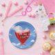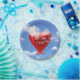 bold red heart floating in blue sky and white fluffy clouds for 25th wedding anniversary party