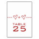 Cute and whimsical Heart Equation Wedding Table Card in dark red featuring a fun math equation "joining" two hearts/people. This nerdy design is a charming choice for a math loving couple or any couple wanting something simple but with a hint of whimsy. Easy to customize, simply add the appropriate table number(s) in the space provided. Click "Customize It" to find more personalization options.