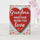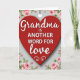 This card shows a large red heart in the center with a slight shine and a soft shadow that helps it stand out. The background is a calm dove-gray, so the heart becomes the main focus right away. On the heart, the text reads “Grandma IS ANOTHER WORD FOR love,” with “Grandma” and “love” in a flowing cursive style and the middle words in simple, easy-to-read letters. Pink roses with gentle green leaves curl in from the corners and edges, with a few small buds that make the border feel sweet and caring. A small round white tag above the heart looks like it’s holding the heart up, like a little gift label. It feels meaningful because it says, in a simple way, that love and family are tied together, and that Grandma is someone to treasure 🥰. This is a lovely way to show affection and closeness, whether you’re near or far ❤️, and to share Valentine’s Day sentiments.