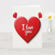 This card shows a large, shiny deep-red heart in the center, with smooth highlights that make it look a bit like a glossy candy or balloon. The background is plain white, so the red heart stands out right away and feels warm and focused. Across the front of the big heart, the words “I love you” appear in flowing white cursive-style lettering. Two smaller red hearts sit near the upper corners, like little echoes of the main heart. Soft shadows and bright reflections give the hearts a gentle 3D look, as if they’re floating slightly above the page. The simple layout makes the message feel direct, honest, and easy to give to someone you care about ❤️. It’s a sweet choice for romance or close friendship, because it says exactly what you mean without needing extra words 🥰. Hope it helps you share Valentine’s Day feelings with someone special.