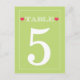 Red Heart Lime Green Wedding Table Number Cards: Use these elegant wedding table number cards to put on your tables at your wedding reception to guide your guests to the correct table. Completely customize with your own numbers and colours. If you would like to change the graphic, please contact me through my store. AntiqueChandelier©