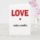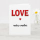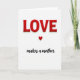 This card shows a simple white background with the word “LOVE” placed across the top in large, shiny deep-red letters with soft shadows. The letters look slightly raised, giving them a gentle 3D feel. Centered underneath is a single red heart, matching the same rich red tone. Near the bottom, the words “makes a mother” appear in thin, flowing black cursive, like neat handwriting. The layout reads from top to bottom like a short message, and the heart helps connect the two lines in a sweet way. It feels meaningful because it says love is what truly makes someone a mother, which can be comforting and affirming to give ❤️. It’s a thoughtful choice for a mom, a mother figure, or someone you care about deeply 🥰, and it’s a warm way to share Valentine’s Day sentiments.