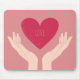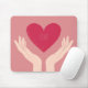 romantic design of a bright pink heart with the word love in the middle and two hands holding up the heart against a blush pink background. This beautiful girlish stylish design is perfect for valentine's day or any other romantic occasion.