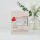 Elegant and modern red heart love photo save the date card on a pale brown background, features a red tilted heart with the word 'love' written below the photo space. Available in various colors. © Morning 6