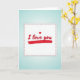 This greeting card features a white card set against a soft cyan-to-blue background, with a light shadow that makes it look gently lifted. In the center, the words “I love you” appear in deep red, written in a flowing, cursive-style lettering. A small red heart sits just above the word “love,” like a sweet little accent that draws your eye ❤️. Under the message, there’s a wide red brushstroke that adds a simple, modern touch without taking away from the words. A dotted border in dark burgundy frames the edges of the card, giving it a neat finish and a bit of texture. The whole scene feels calm and direct, which makes the message land in an honest way. It’s a meaningful card to give when you want to say something clear and close-to-the-heart, whether it’s for a partner or someone you care about 🥰. Hope it helps you share your Valentine’s Day sentiments.