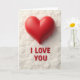 This greeting card shows a rounded red heart near the top, with a soft shadow that makes it look slightly raised. The heart has a smooth, matte look, and it stands out against a cream-white background that looks textured, like snow or fluffy clouds. The lighting is gentle, so the whole scene feels calm and cozy. Under the heart, the words “I LOVE YOU” appear centered in red letters with simple, straight shapes and a faint shadow. The layout is straightforward, which makes the message feel honest and easy to trust. It’s a meaningful card to give because it says exactly what you feel without needing anything extra, whether it’s for a partner or someone you care about 🥰❤️. Hope it helps you share Valentine’s Day feelings in a sweet, caring way.