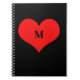 Red Heart Monogrammed Initial Name Black Cute Notebook