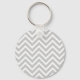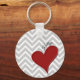 Red Heart on Grey Chevron Stripe with Name Keychain