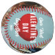 Red Heart Our First Valentine's Together 2 Photo Softball. Modern personalized softball featuring 2 photos, modern and trendy typography saying Our first Valentine's Day together, lovely red hearts, name and year. Add your names, 2 photos and year and make a lovely gift for your boyfriend who loves sports.