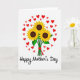 Designed with a bright white background, the card centers on a bouquet of three golden-yellow flowers with deep brown centers, arranged to feel like a thoughtful gift from a close friend or sweetheart ❤️. Green stems and leaves gather neatly at the base, tied together with a rich red ribbon that suggests care and attention. Around the bouquet, many red hearts in mixed shades drift outward, like an affectionate hug spreading across the space. The warm yellow petals and red hearts contrast with the crisp white backdrop, while the greens keep the arrangement grounded and fresh. Near the bottom, a short message sits in dark charcoal lettering, placed below the bouquet to balance the design. The lettering has a casual, handwritten look that adds a gentle, intimate tone without crowding the artwork 🌼. The hearts appear in both solid and lighter red tones, scattered above and to the sides of the flowers in an airy ring.