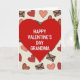 This greeting card shows a large ruby-red heart centered on a creamy, lightly textured background that looks like woven paper. Inside the heart, the text reads “HAPPY VALENTINE’S DAY GRANDMA” in simple white letters, set neatly across the middle. Around the heart, small hearts in shades of red and soft rose are scattered like confetti, some edged with tiny dotted lines. You’ll also notice small brown envelopes with dark outlines, like little love notes tucked into the design. The overall look feels warm and gentle, with the heart standing out clearly against the softer background. It’s a sweet way to show Grandma she’s loved and remembered, even if you keep your message short. The mix of hearts and envelopes makes it feel like you’re sending affection straight from the mailbox 🥰❤️.