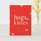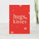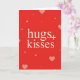 This greeting card features a deep red background filled with small, pale pink hearts scattered around like a gentle sprinkle. In the center, the words “hugs + kisses” sit in an off-white serif letter style that looks classic and easy to read. The plus sign is placed right between the words, making it feel like you’re giving both at once. The hearts vary a bit in size and spacing, which adds a light sense of motion without distracting from the message. With no characters or busy objects, the simple layout keeps the focus on affection and closeness ❤️. The strong red and soft pink pairing feels warm and romantic, like a quick reminder that someone is on your mind. It’s a meaningful card to give because it says something tender without needing a long note 🥰. Hope it helps you share your Valentine’s Day sentiments.