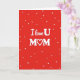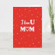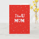 This card features a deep red background with lots of small white hearts scattered across it, like they’re gently floating. In the center, the message reads “I love U MOM” in white, so it stands out clearly. “I love U” looks like smooth, slightly cursive lettering, while “MOM” is in all caps with thicker letters for extra focus. The “O” in “MOM” is replaced by a white heart icon, tying the design together in a sweet, simple way. The strong red-and-white contrast makes the message feel direct and easy to read at a glance. It feels meaningful to give because it says love and appreciation without needing a long note, and the hearts add a soft, caring mood ❤️. If you’re looking for a straightforward way to show your mom she matters, this design makes it easy 🥰.