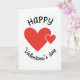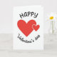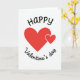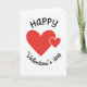This card features a bright white background with two rich red hearts centered like a quiet embrace ❤️. The larger heart sits in the middle, and a smaller heart tucks into its upper-right curve, separated by a thin white edge that reads like a gentle hold. Above the hearts, the word “Happy” arches in black, drawn with loose, flowing strokes that follow the curve of the design. Below, “Valentine’s day” stretches across in the same black, smoothly written lettering, balancing the layout. The strong red against the white space keeps the focus on the pair of hearts, like two people leaning close without needing extra scenery 🥰. Rounded heart edges and slightly uneven letter lines give it a soft, human touch, as if it were written in the moment. “Happy” sits centered above the hearts, while “Valentine’s day” rests centered beneath them in black against the white background.