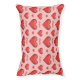 Destei's pattern of red hearts together with a custom name. The background color is blush pink.