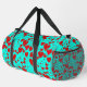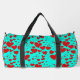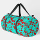 Red Heart Shapes Pattern in Vivid Turquoise Duffle Bag