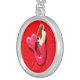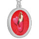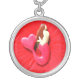 red heart-tailed mermaid silver plated necklace