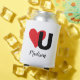 Give your girlfriend or boyfriend this can cooler for Valentine's day or any special occasion and they will love you for it. This modern design features a red heart and the letter "U" in black typography with a name for you to personalize. Designed by world renowned artist ©Tim Coffey.