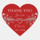 Elegant, modern, red heart wedding thank you sticker for favors with boho floral lace.