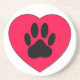 Red Heart With Dog Paw Print Coaster