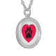 Red Heart With Dog Paw Print Silver Plated Necklace