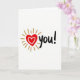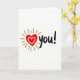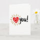 This card shows a white background with a large red heart in the center, outlined with a thin white line inside it. Short golden-brown strokes radiate outward from the heart like little rays, giving it a warm, glowing feel. To the right of the heart, the text reads “you!” in loose, hand-drawn black lettering, with an exclamation mark that adds extra excitement. The simple layout makes the heart and the word feel like they belong together, like a direct message meant for one person. It comes across as affectionate and upbeat, without needing lots of extra details to explain itself 🥰. The red, gold-brown, black, and white colors keep the focus on love, closeness, and appreciation ❤️. It’s a sweet way to say “it’s you” and make someone feel chosen, so you can share Valentine’s Day sentiments.