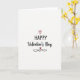 This greeting card keeps things simple with a white background and a clear Valentine’s message. In the center, it says “Happy Valentine’s Day” in black, with “HAPPY” in plain, thick letters and “Valentine’s Day” in flowing cursive-style writing. A small red heart outline sits just above the word “HAPPY,” like a sweet little hint of what’s coming. Under the main words, there’s a black swirl decoration that curves across the lower area. Tucked into that swirl is a small solid red heart that adds an extra touch of love ❤️. The strong contrast of black and red on white makes everything easy to read and feel warm without being too much.