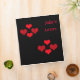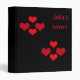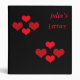 Pattern of two groups of hearts in two different shades of red with the words "Julia's Letters". The words and the hearts are placed on a black background. You can easily change the colour of the background and insert your own words.