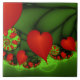 Red Hearts Lime Green Modern Abstract Fractal Art Ceramic Tile